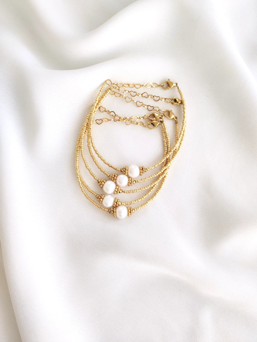 - 🔨Perles Miyuki plaquée or - pierre d'eau douce naturelle - fermoir et chainette en acier inoxydable.